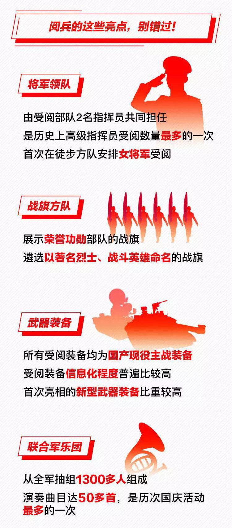 為慶祝新中國成立70周年,10月1日北京天安門廣場將舉行盛大閱兵式。屆時,32個裝備方隊、12個空中梯隊將通過天安門廣場,接受檢閱。此次閱兵,所有受閱裝備均為國產(chǎn)現(xiàn)役主戰(zhàn)裝備,其中包括我軍部分新型裝備,是近幾次閱兵中規(guī)模最大的一次。 強國必須強軍,強軍必須利器。作為我軍機械化、信息化、智能化裝備發(fā)展的骨干,全軍毀傷打擊的核心支撐和現(xiàn)代化新型陸軍體系作戰(zhàn)能力科研制造的主體,此次國慶閱兵式,兵器工業(yè)集團研制生產(chǎn)的16型裝備將接受黨和人民的檢閱,分布在受閱裝備方隊7個模塊中的陸上作戰(zhàn)、防空反導(dǎo)、信息作戰(zhàn)、無人作戰(zhàn)、后裝保障五個模塊、32個方隊中的12個方隊,集中展示了兵器工業(yè)集團履行強軍首責(zé)、自主創(chuàng)新的最新成果。 10月1日大閱兵 我們準(zhǔn)備好了 |