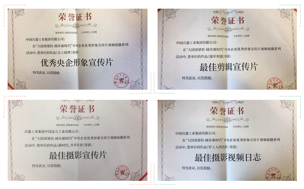 本次展播活動分設(shè)形象宣傳片、員工視頻日志兩個賽道,從中央企業(yè)報送的2600余部作品中,評選出了“優(yōu)秀央企形象宣傳片”、“最具大國精神宣傳片”和“央企員工優(yōu)秀視頻日志”等十二個種類、120部優(yōu)秀作品,中國兵器工業(yè)集團(tuán)4部作品獲獎。