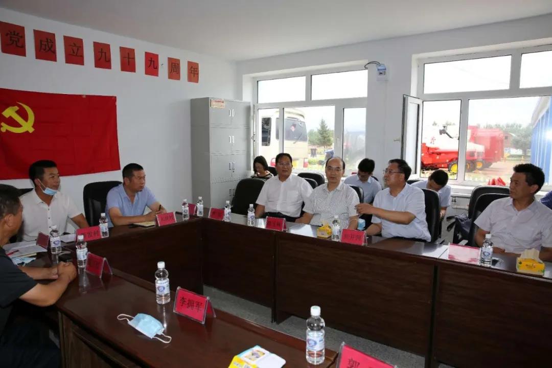 在興隆鄉(xiāng)新建村,焦開(kāi)河聽(tīng)取了大崗村、新發(fā)村和新建村關(guān)于農(nóng)機(jī)服務(wù)隊(duì)項(xiàng)目運(yùn)行情況、收益和減貧的情況介紹,詳細(xì)了解了項(xiàng)目幫扶機(jī)制及未來(lái)發(fā)展想法。焦開(kāi)河表示,農(nóng)機(jī)服務(wù)隊(duì)不僅實(shí)現(xiàn)了對(duì)貧困戶的幫扶,還可以通過(guò)創(chuàng)收、維護(hù)、解決就業(yè),帶動(dòng)農(nóng)業(yè)機(jī)械化發(fā)展,是一個(gè)可持續(xù)項(xiàng)目。他強(qiáng)調(diào),下一步要整合好各村農(nóng)機(jī)服務(wù)隊(duì),實(shí)現(xiàn)更大規(guī)模的連片種植。焦開(kāi)河專門(mén)叮囑集團(tuán)公司派駐大崗村第一書(shū)記吳寶明,要充分發(fā)揮駐村第一書(shū)記作用,抓好黨建工作,積極培育致富帶頭人,為大崗村后續(xù)發(fā)展奠定好基礎(chǔ)。