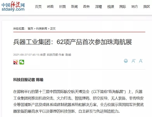 9月28日-10月3日,第十三屆中國(guó)國(guó)際航空航天博覽會(huì)在廣東珠海舉行,中國(guó)兵器工業(yè)集團(tuán)有限公司作為主辦單位閃耀亮相,推出裝甲突擊、火力打擊、智能彈藥、防空反導(dǎo)、無(wú)人裝備、非傳統(tǒng)安全、軍工軍技合作等領(lǐng)域新產(chǎn)品及成體系成建制武器系統(tǒng)和解決方案,全方位展示我國(guó)陸軍外貿(mào)武器裝備的最高水平以及雄厚的科技創(chuàng)新、自主研發(fā)與先進(jìn)制造能力,受到廣泛關(guān)注。