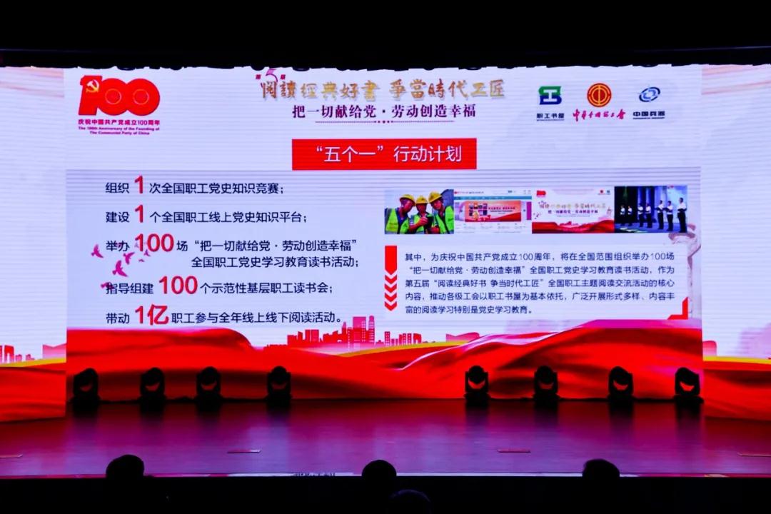 4月23日是第26個(gè)世界讀書日。在中華全國總工會指導(dǎo)下,全國工會職工書屋建設(shè)領(lǐng)導(dǎo)小組和中國兵器工業(yè)集團(tuán)有限公司共同舉辦了第五屆“閱讀經(jīng)典好書 爭當(dāng)時(shí)代工匠”全國工會職工書屋主題閱讀交流活動(dòng)暨“把一切獻(xiàn)給黨·勞動(dòng)創(chuàng)造幸福”全國職工黨史學(xué)習(xí)教育讀書活動(dòng)啟動(dòng)儀式。中華全國總工會黨組書記、副主席、書記處第一書記陳剛出席活動(dòng)并講話,中國兵器工業(yè)集團(tuán)有限公司黨組書記、董事長焦開河致辭。陳剛向焦開河傳授活動(dòng)火炬。全國總工會黨組成員、經(jīng)費(fèi)審查委員會主任、全國工會職工書屋建設(shè)領(lǐng)導(dǎo)小組組長李曉鐘,全國總工會兼職副主席高鳳林,中國兵器工業(yè)集團(tuán)有限公司黨組副書記周艦出席活動(dòng)。 陳剛指出,持續(xù)在廣大職工中開展主題閱讀活動(dòng),是工會組織貫徹落實(shí)習(xí)近平總書記關(guān)于“要提倡多讀書,建設(shè)書香社會,不斷提升人民思想境界、增強(qiáng)人民精神力量”要求的具體行動(dòng)。今年是中國共產(chǎn)黨成立100周年,黨中央要求在全社會開展黨史、新中國史、改革開放史、社會主義發(fā)展史宣傳教育。深入開展職工主題閱讀活動(dòng),并將之與黨史學(xué)習(xí)教育緊密結(jié)合,對于教育廣大職工緊跟共產(chǎn)黨、奮進(jìn)新時(shí)代,充分調(diào)動(dòng)起億萬職工投身全面建設(shè)社會主義現(xiàn)代化國家新征程的熱情,具有十分重要的意義和作用。 陳剛強(qiáng)調(diào),要聚焦思想政治引領(lǐng),深入開展職工閱讀活動(dòng),與開展“中國夢·勞動(dòng)美--永遠(yuǎn)跟黨走 奮進(jìn)新征程”主題教育活動(dòng)有機(jī)結(jié)合,引導(dǎo)廣大職工堅(jiān)定不移聽黨話、跟黨走。要把開展職工閱讀活動(dòng)作為深化產(chǎn)業(yè)工人隊(duì)伍建設(shè)改革、提高職工整體素質(zhì)的重要途徑,培養(yǎng)職工良好的閱讀學(xué)習(xí)習(xí)慣,造就更多高素質(zhì)技術(shù)技能人才、能工巧匠、大國工匠。要聚合平臺陣地優(yōu)勢,推動(dòng)職工書屋與工人文化宮、職工服務(wù)中心等工會服務(wù)場所及網(wǎng)絡(luò)平臺陣地融合發(fā)展,堅(jiān)持職工為本、貼近基層,突出公益性、服務(wù)性,實(shí)現(xiàn)創(chuàng)新升級,不斷激發(fā)活力,打造億萬職工文化家園。要引導(dǎo)職工求知善讀,博學(xué)精進(jìn),勵(lì)學(xué)敦行,共同譜寫勞動(dòng)光榮的華彩樂章,匯聚團(tuán)結(jié)奮進(jìn)的強(qiáng)大正能量。