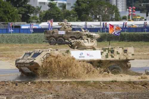 裝甲突擊領(lǐng)域,參展產(chǎn)品擁有強大的武器系統(tǒng)、良好的越野機動性、先進(jìn)的信息系統(tǒng),具有跑的快、打的準(zhǔn)、防的住、信息化智能化程度高等特點。