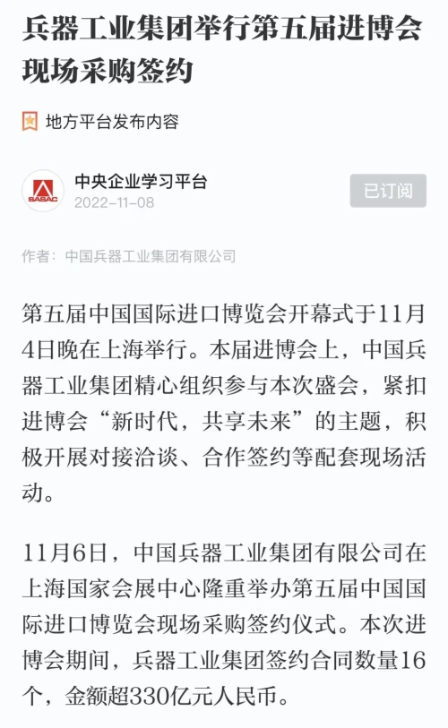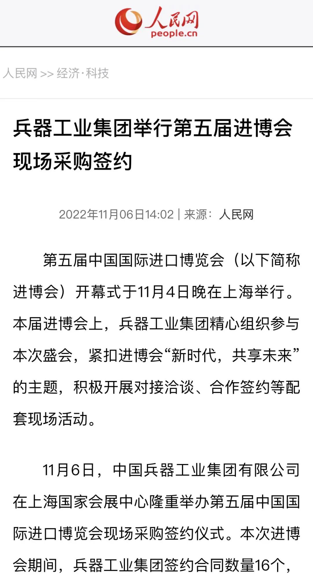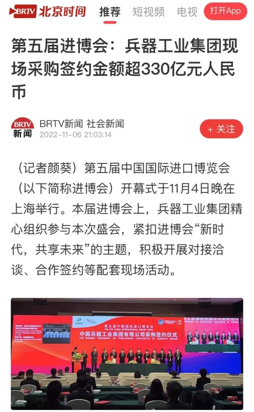 兵器工業(yè)集團第五屆進博會成果受到廣泛關(guān)注 |