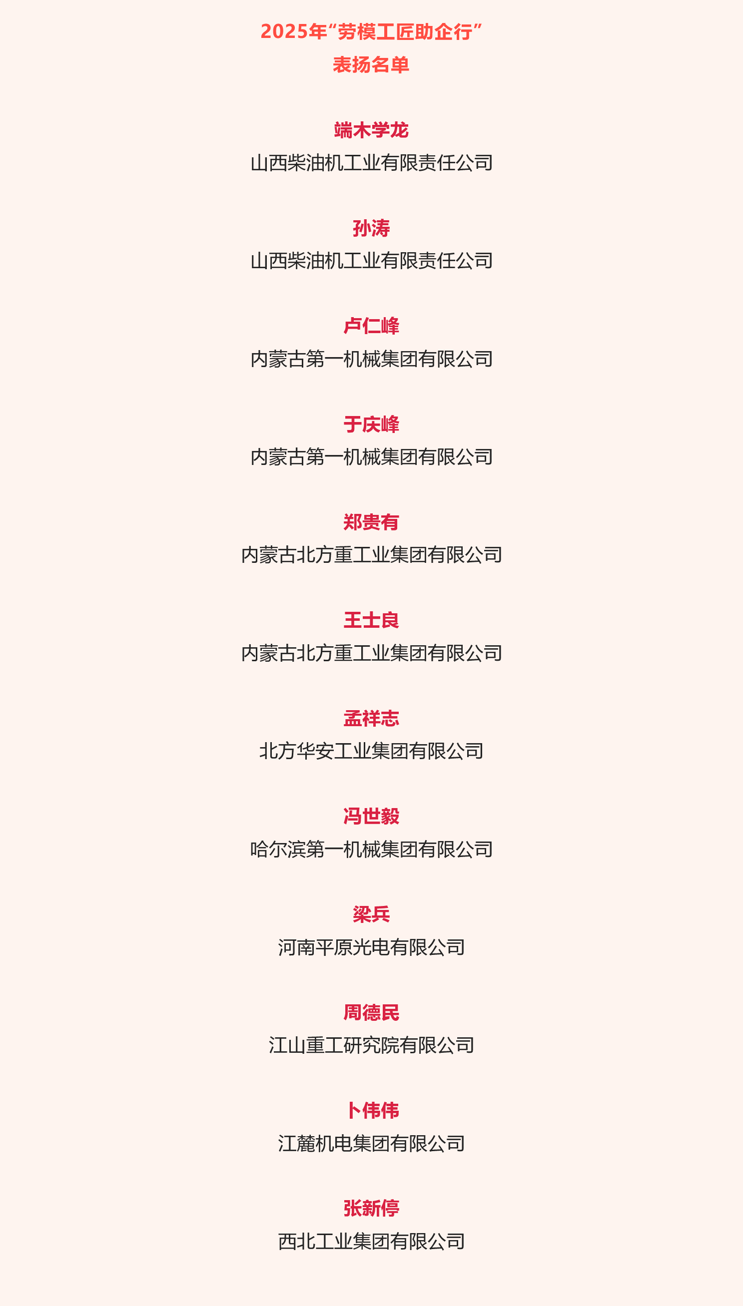 兵器工業(yè)集團12名勞模工匠入選“勞模工匠助企行”表揚名單 |